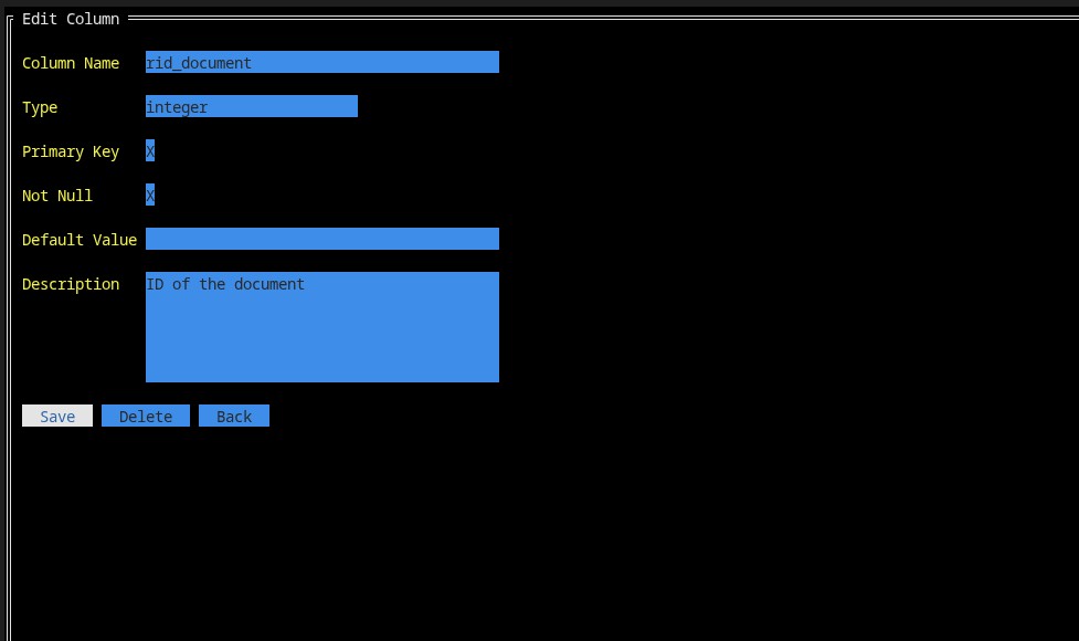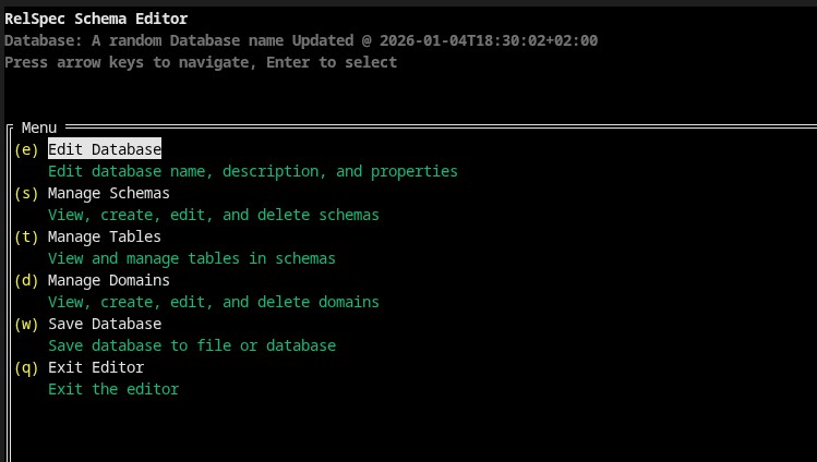 - Interactive TUI editor for visual schema management